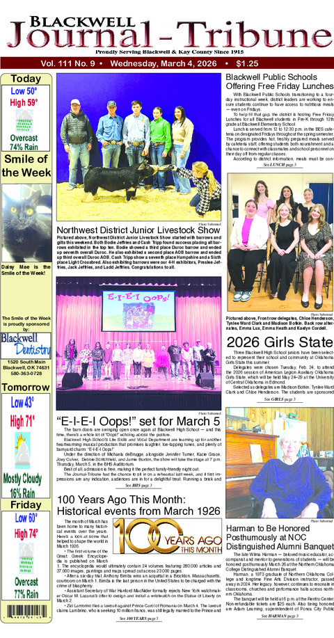The City of Blackwell will host a Community-Wide Health Fair on Wednesday, March 25, 2026,...